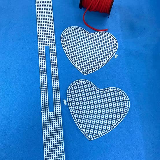 PLASTIC CANVAS BOLSO CORAZON 18X20 CM